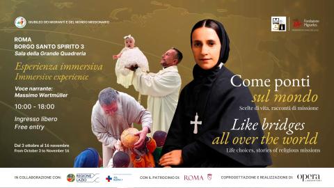 In occasione del Giubileo dei Migranti e del Mondo Missionario (4 e 5 ottobre), la Fondazione Museo Nazionale dell’Emigrazione Italiana e la Fondazione Migrantes hanno realizzato una mostra immersiva - COME PONTI SUL MONDO. Scelte di vita, storie di missione - per rendere omaggio ai tanti missionari e alle tante missionarie che, partendo dal nostro paese, hanno scelto di essere accanto e di accompagnare gli emigranti italiani nel mondo.