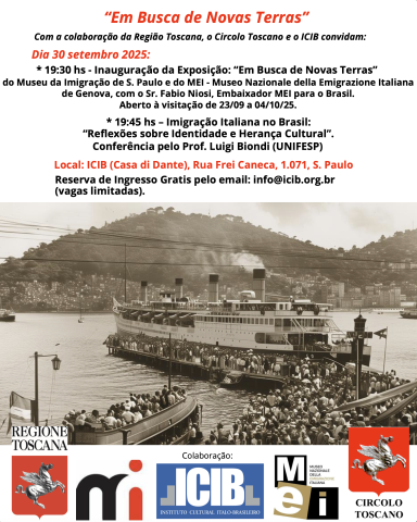 A seguito del successo del progetto promosso dal Museo dell’Immigrazione dello Stato di San Paolo e dal MEI – Museo Nazionale dell’Emigrazione Italiana, “Alla ricerca della nuova terra” (“Em busca de novas terras”), dedicato a raccontare la storia dell’emigrazione italiana in Brasile, lo scorso 30 settembre l’iniziativa è tornata a San Paolo, presso l’ICIB (Casa di Dante). L’inaugurazione ha visto la partecipazione del nostro Ambasciatore MEI in Brasile, Fabio Niosi, e del professor Luigi Biondi (UNIFESP), che ha approfondito, attraverso una riflessione, i temi dell’identità e dell’eredità culturale dell’emigrazione italiana in Brasile.