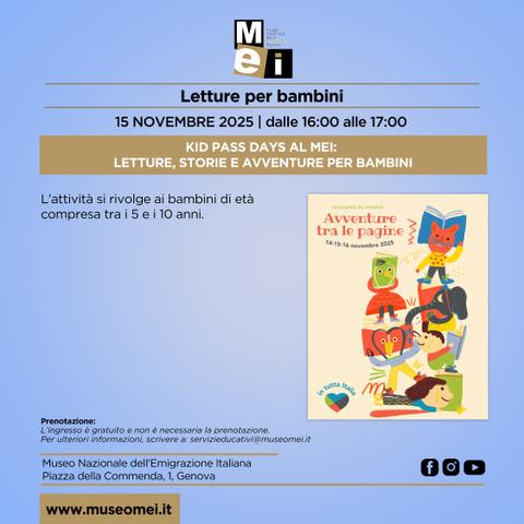 Sabato 15 novembre, dalle ore 16:00 alle 17:00, in occasione di “Avventure tra le Pagine – Leggiamo al Museo”, al MEI i bambini saranno invitati a intraprendere un viaggio fantastico intorno al mondo, alla scoperta di storie, culture e tradizioni provenienti da ogni angolo del pianeta. Tra racconti sorprendenti, personaggi curiosi e paesaggi lontani, i libri diventeranno vere e proprie finestre aperte sull’immaginazione.