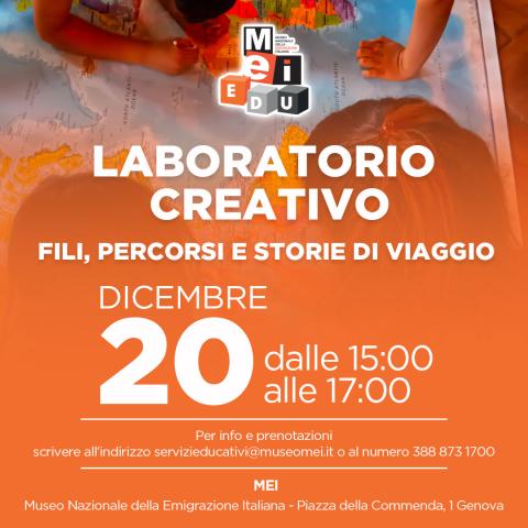 Sabato 20 dicembre, dalle ore 15:00 alle 17:00, in occasione delle feste natalizie, i Servizi Educativi del MEI propongono il laboratorio creativo “Fili, percorsi e storie di viaggio”.